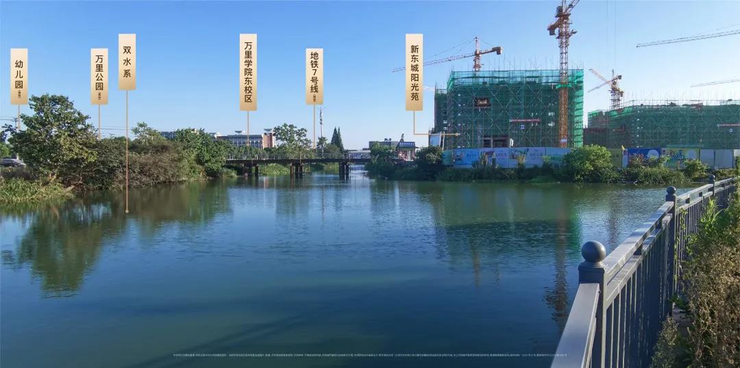 雙水岸環(huán)繞的不可復(fù)制性,也使得新東城陽光苑成為樓市中的搶手貨。新東城陽光苑東側(cè)、北側(cè),環(huán)繞兩條平均寬度超過30米的天然水系,放眼望去,項目呈天然半島形態(tài),河面水波粼粼,兩岸綠意盎然。萬里公園(規(guī)劃)也近在咫尺。居住于此,不必遠行去尋找風(fēng)景,每一天,都可以感受公園里的詩意,陶冶情操。除了稀缺的生態(tài)資源,項目周邊配套也十分完善。
