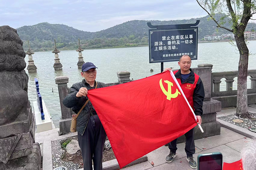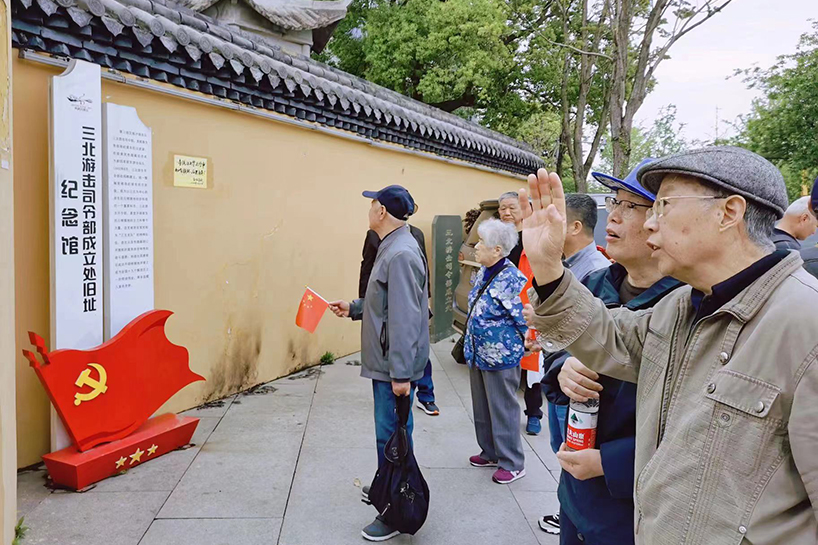 “我宣誓,我志愿加入中國共產(chǎn)黨,擁護黨的綱領(lǐng),遵守黨的章程,履行黨員義務(wù),執(zhí)行黨的決定……”在慈溪三北游擊司令部舊址,敵后抗日第一站紀念碑前,黨員們的句句誓詞響徹天際。