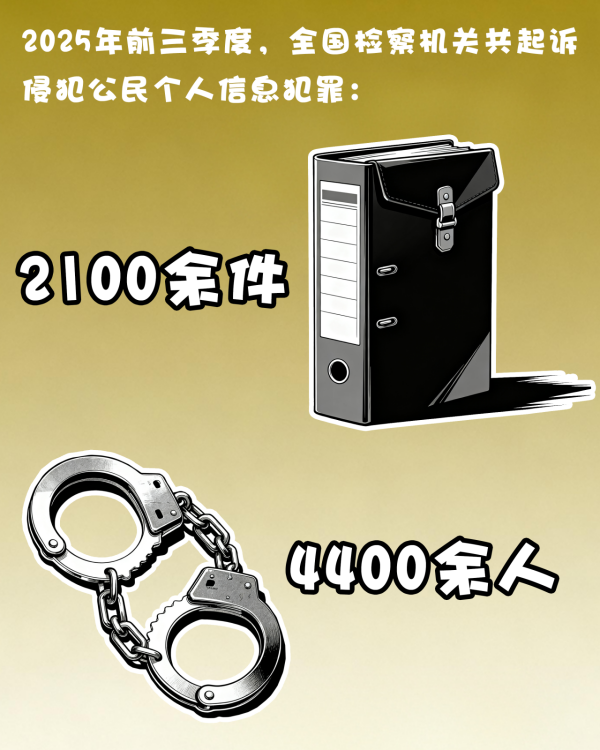 2024年,檢察機(jī)關(guān)起訴利用網(wǎng)絡(luò)實(shí)施的侵犯公民個(gè)人信息犯罪2458人;2025年前三季度,全國(guó)檢察機(jī)關(guān)共起訴侵犯公民個(gè)人信息犯罪2100余件4400余人。